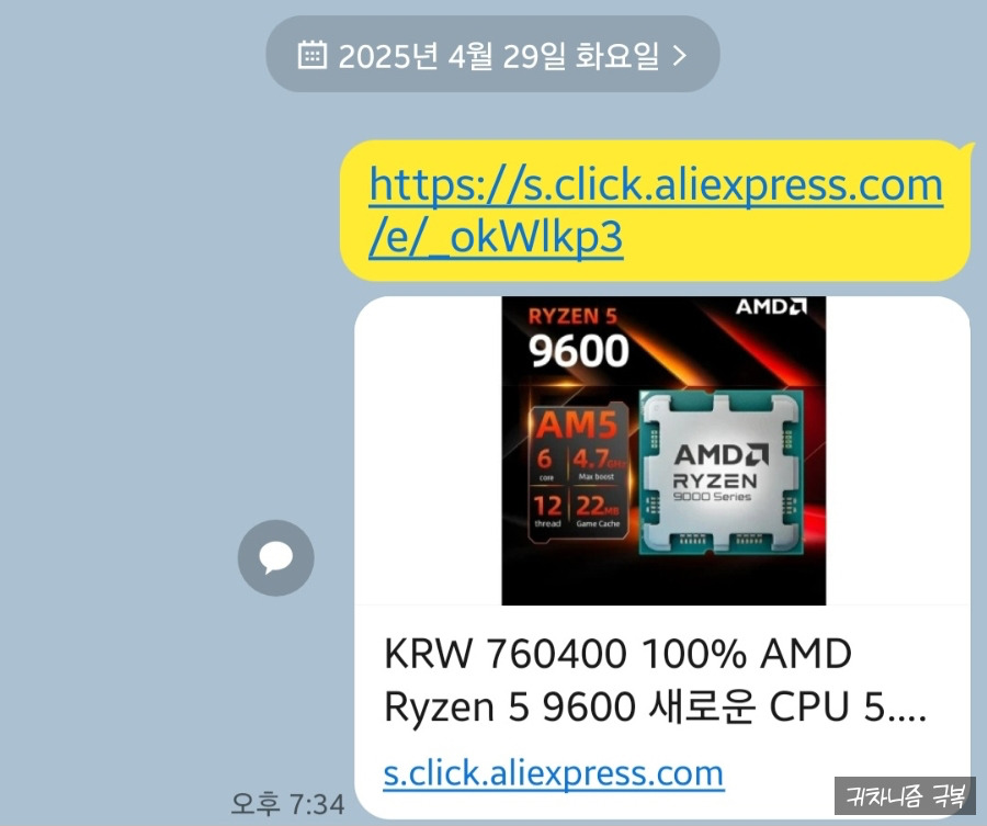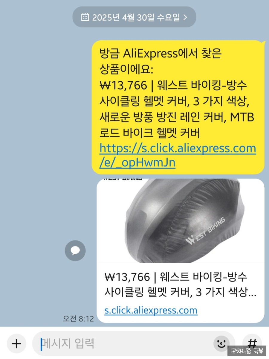 아래 사진과 같이 해당 상품의 링크가 메세지로 바로 전달되는 것을 확인할 수 있습니다.