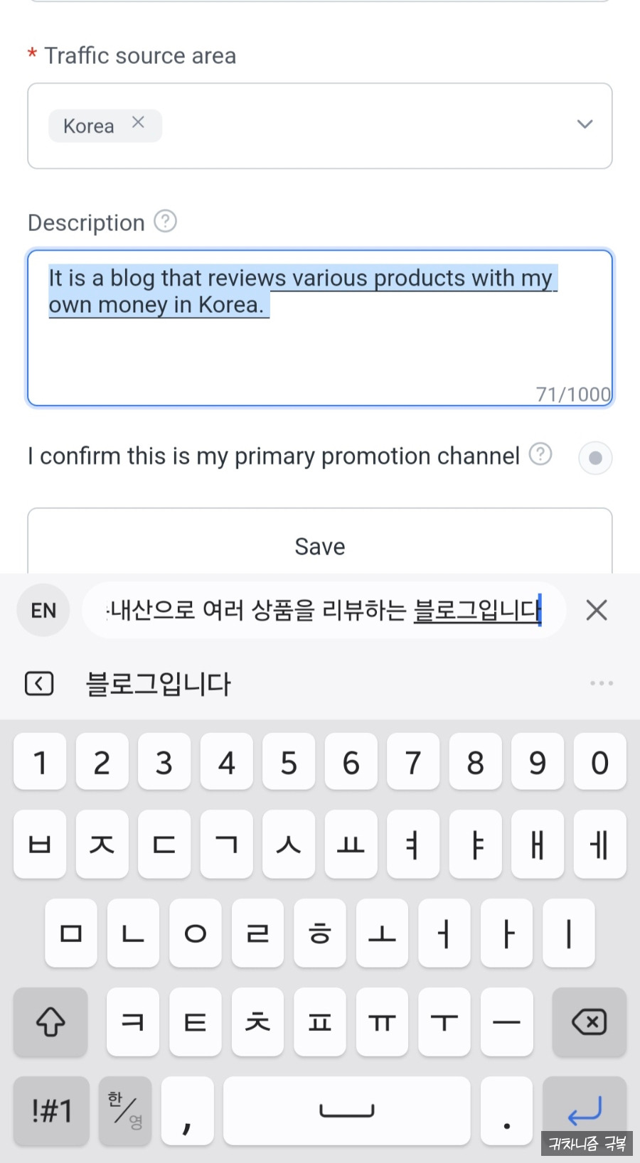 이번에는 갤럭시S25에 있는 자동 번역기능을 활용해서 작성했습니다. 한국어를 입력하면 영어로 바로 생성되어 입력이 되니 정말 편하더군요.