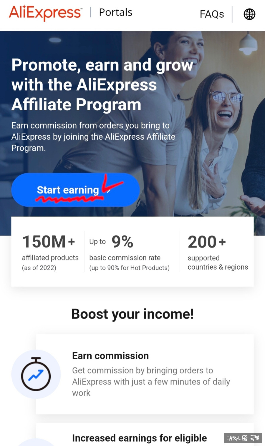 먼저 알리 익스프레스 어필리에이트 프로그램 페이지로 이동합니다. 링크는 내용에 방해가 되니 맨 아래에 붙여 놓을게요.