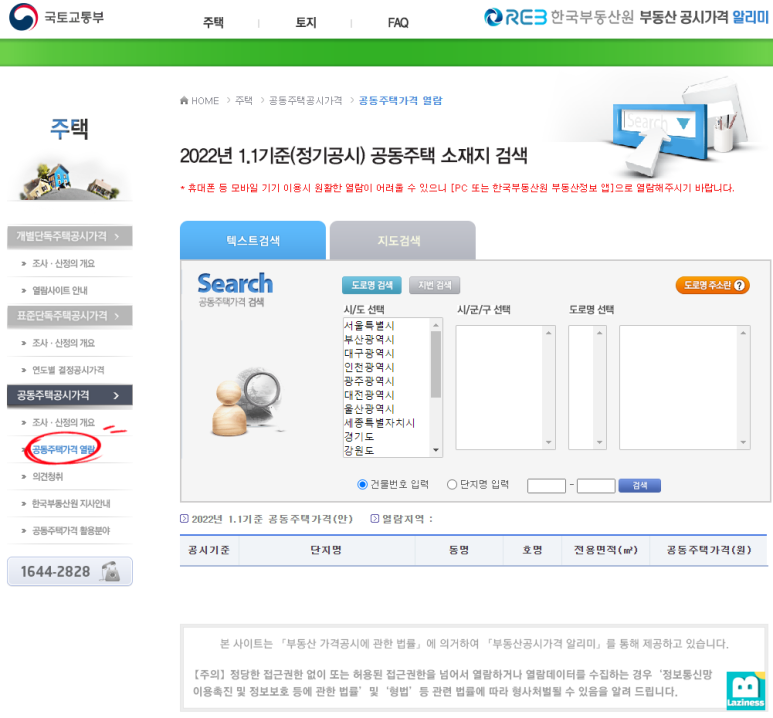 그럼 아래와 같이 주택과 관련된 공시가격을 조회할 수 있는 화면이 바로 나타나게 됩니다.