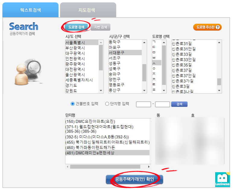 제가 살고 있는 아파트 기준으로 한번 공시지가를 조회해보도록 할게요. 먼저 텍스트 검색으로 진행해볼게요.