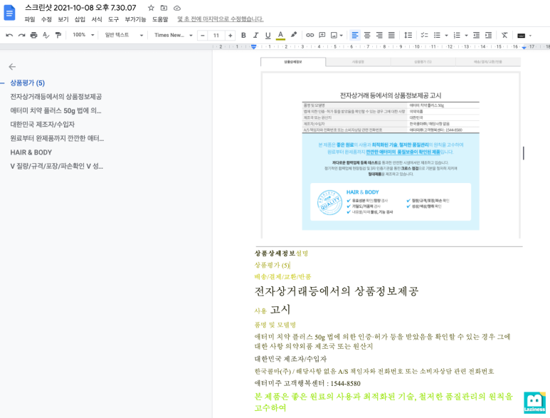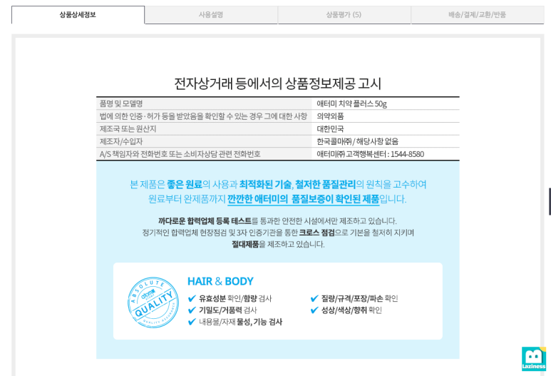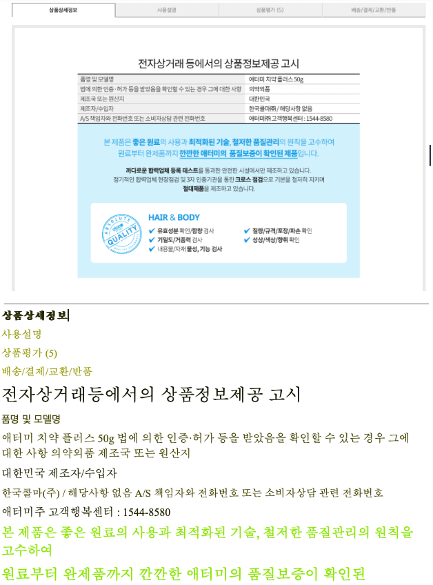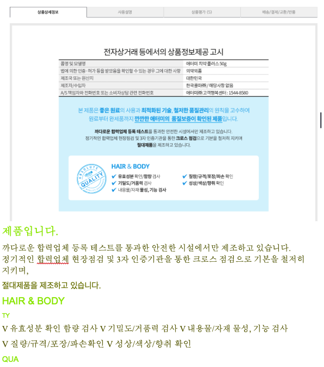 먼저 테스트를 위해, 구매하려고 하는 치약의 상품정보를 캡쳐해서 테스트를 진행해 보겠습니다.
