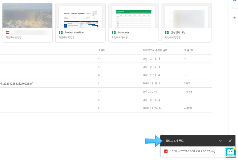 메인 페이지에 보면 방금 업로드한 파일이 있습니다.