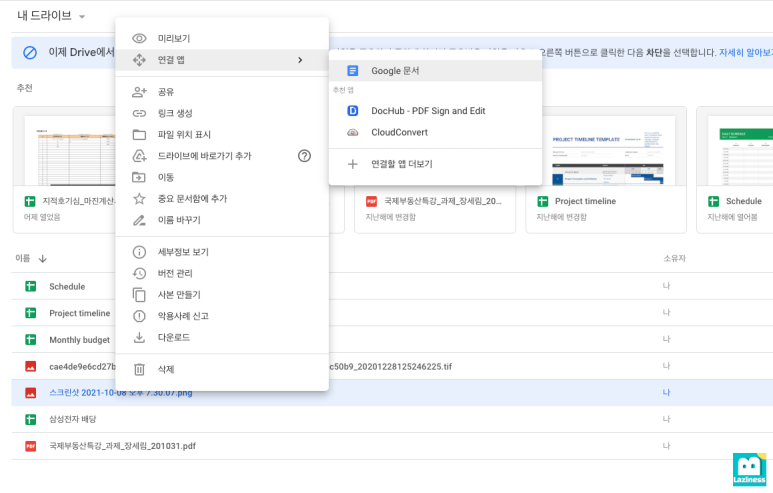 팝업된 메뉴에서 위 사진과 같이 "Google 문서" 메뉴를 눌러서 이동합니다.