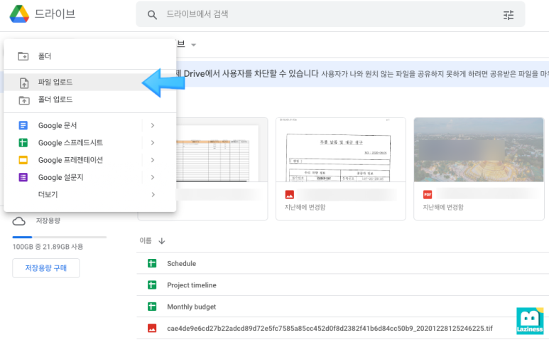 "업로드" 버튼을 눌러, 파일을 올려줍니다. 전 MAC으로 했는데, 조금 UI는 다르겠지만 윈도우도 비슷할 겁니다.