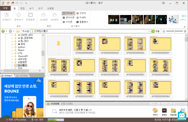 해당 특정 폴더에만 이미지 회전은 윈도우 파일탐색기에서도 되는데요, 여러 폴더에 있는 이미지를 일괄로 작업하는 부분은 안되어서 한번 시도해 본 내용입니다.