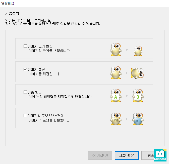 저는 이미지 일괄 회전을 할거라, 이 부분만 선택하고 진행해보겠습니다.
