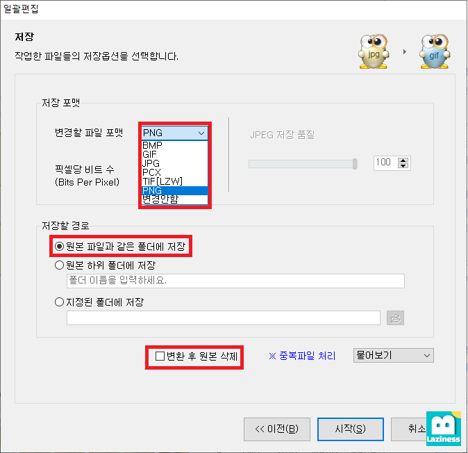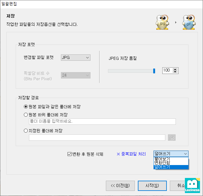7.일괄편집한 파일을 어떻게 저장할 지 지정해 줍니다.