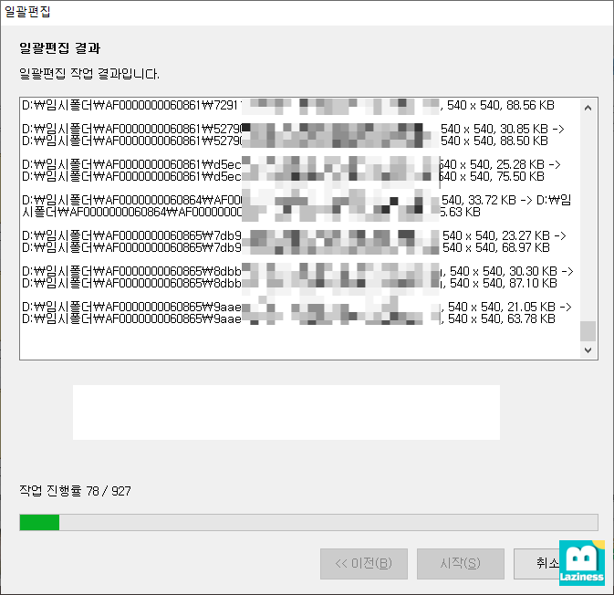 927개 파일을 작업대상으로 해 진행해서 좀 시간이 걸리네요. PC 성능에 따라 대기 시간은 좀 달라 질 것 같습니다.