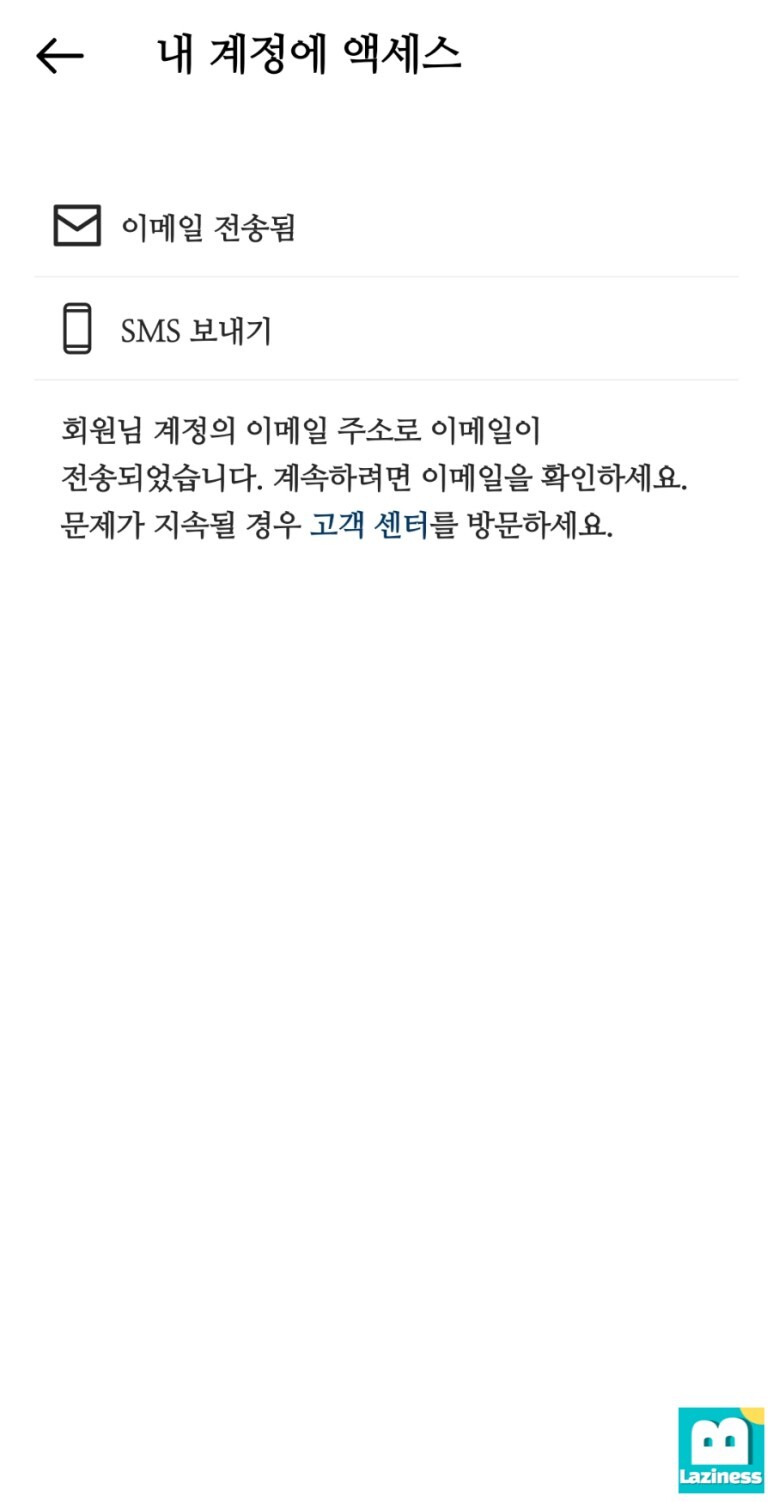 다음 버튼을 누르고 난 후에는 이메일이 전송되었다는 메세지가 나타나고요.