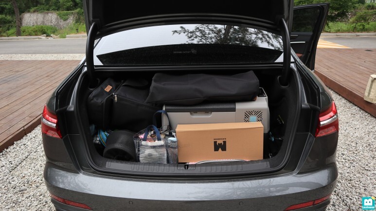 제 차량은 아우디 A6 40TDI 승용차인데요. 캠핑관련 짐을 수납하면 아래와 같은 모습이 됩니다. 3인 가족 캠핑이기 때문에 좌석 안쪽에도 짐을 넣어둔 상태니 참고하시구요.