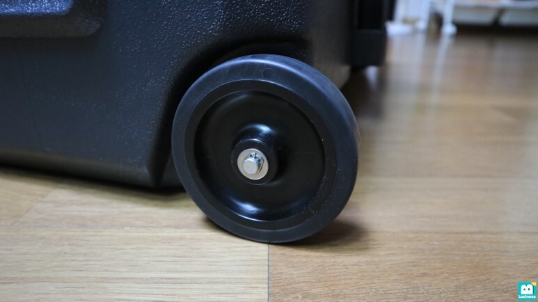 자세히 바퀴를 보면 고무 재질이 부착되어 덜그럭 거리는 소음이 발생하지 않고 고급 승용차(?)와 같이 부드럽게 이동이 가능합니다.