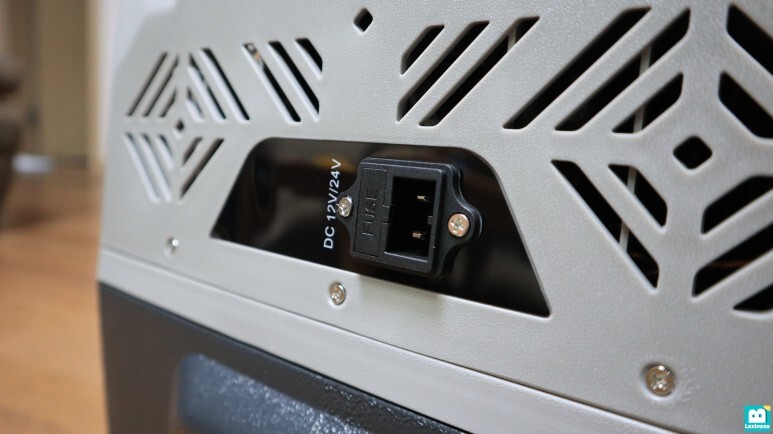 측면 한쪽에는 전기 코드를 끼울 수 있고 DC 12V/24V를 지원합니다. 여기에서는 안쪽을 시원하게 한 후 방출되는 뜨거운 공기가 배출되는 곳이기도 하구요.