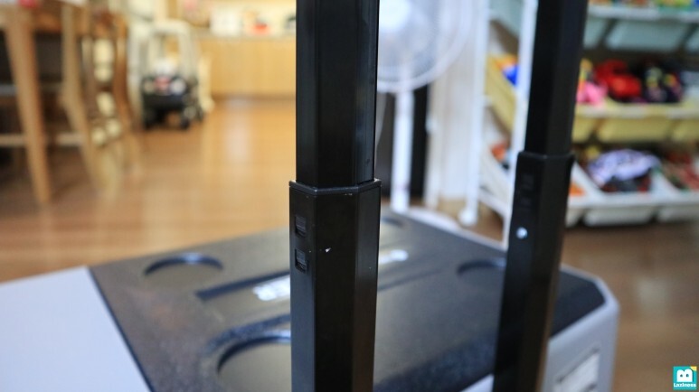 뒷편에는 바퀴를 활용해 이동할 때 사용할 수 있는 튼튼한 손잡이가 있습니다.